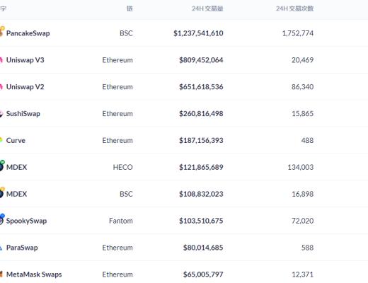 过去24小时去中心化交易所的交易量数据来源:Debank