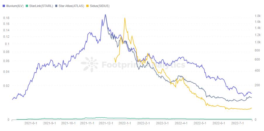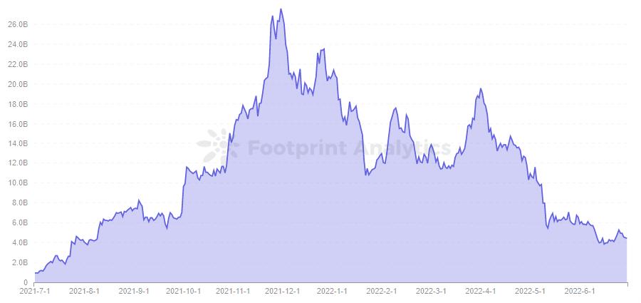 一些已发 token 的项目其市值在今年上半年也是跟随整个 GameFi 的行情走下坡路。