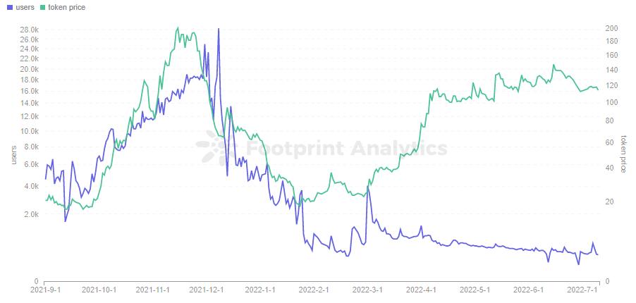 Footprint Analytics - Axie Users & AXS Token Price