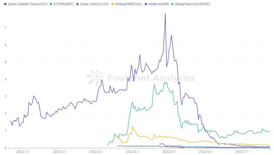 从 Footprint Analytics 看到,虽然其他模式的 X2E 还在初期概念阶段,但 M2E 的 StepN 在 5 月引领了一波热潮,其他的模仿者也层出不穷。