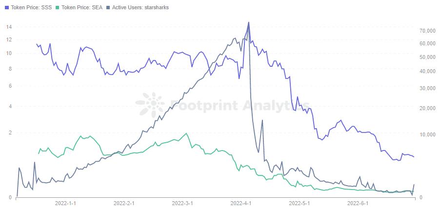 Footprint Analytics - StarSharks Token Price vs Active Users
