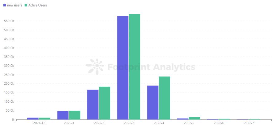 Footprint Analytics - StarSharks Monthly New Users & Active Users