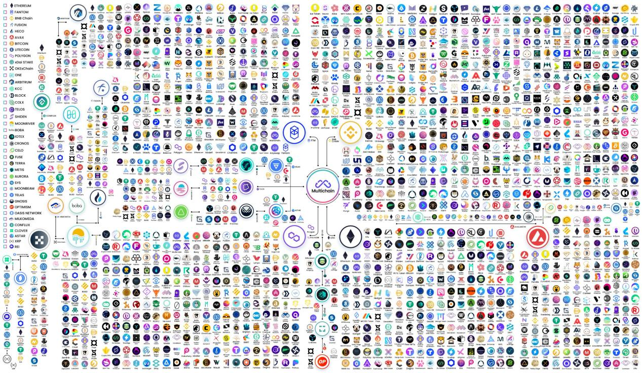 跨链的渗透性在DeFi的可组合特点下得到了最好的发挥。我们经常在DAPP中看到各色跨链资产,如借贷市场中的WBTC、DEX中的ceUSDC。Multichain这张生态图很好地说明了这一点。