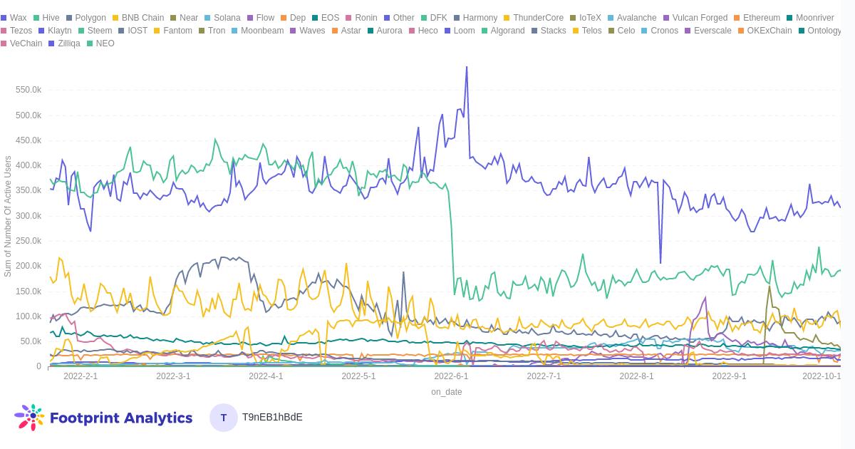 Splinterlands 和 Alien Worlds 仍然是 GameFi 中玩得最多的两个游戏,总体数量保持相对稳定。