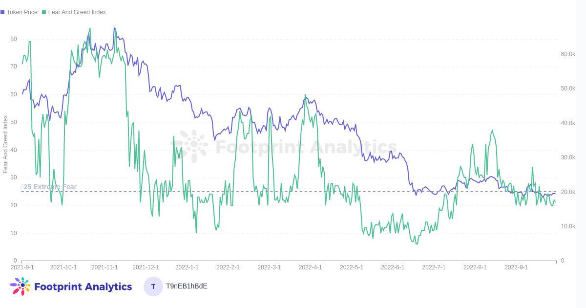 在8月份恐惧与贪婪指数大幅跳升,几乎达到 "贪婪 "水平后,该指数在9月份回落到极端恐惧的状态。