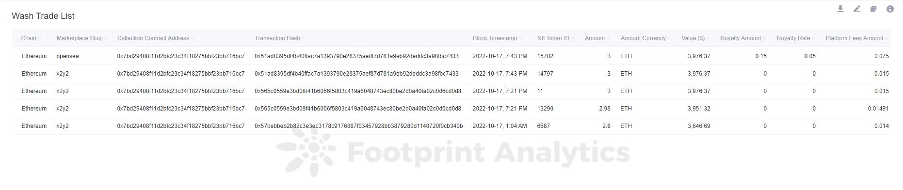 Meebits NFT Wash Trade List (Data source: Footprint Analytics)