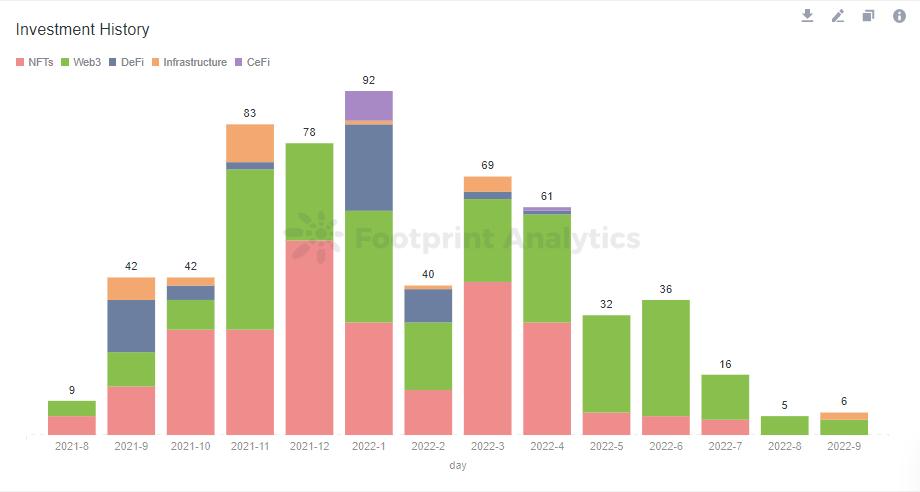 Number of Animoca Brands’ Investment by Category(Data source: Footprint Analytics)