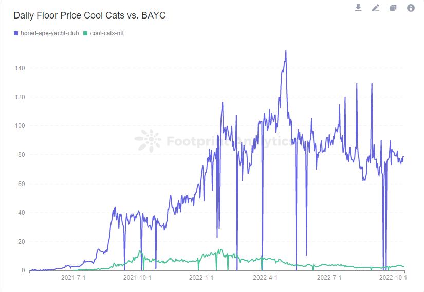 Daily Floor Price-Cool Cats vs. BAYC (Data source: Footprint Analytics)