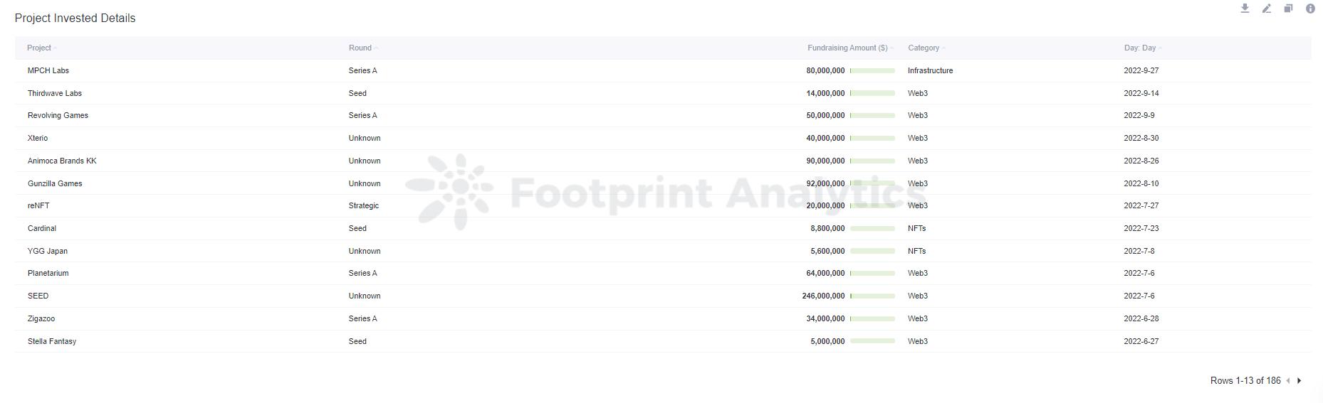 Investment history of Animoca Brands (Data source: Footprint Analytics)