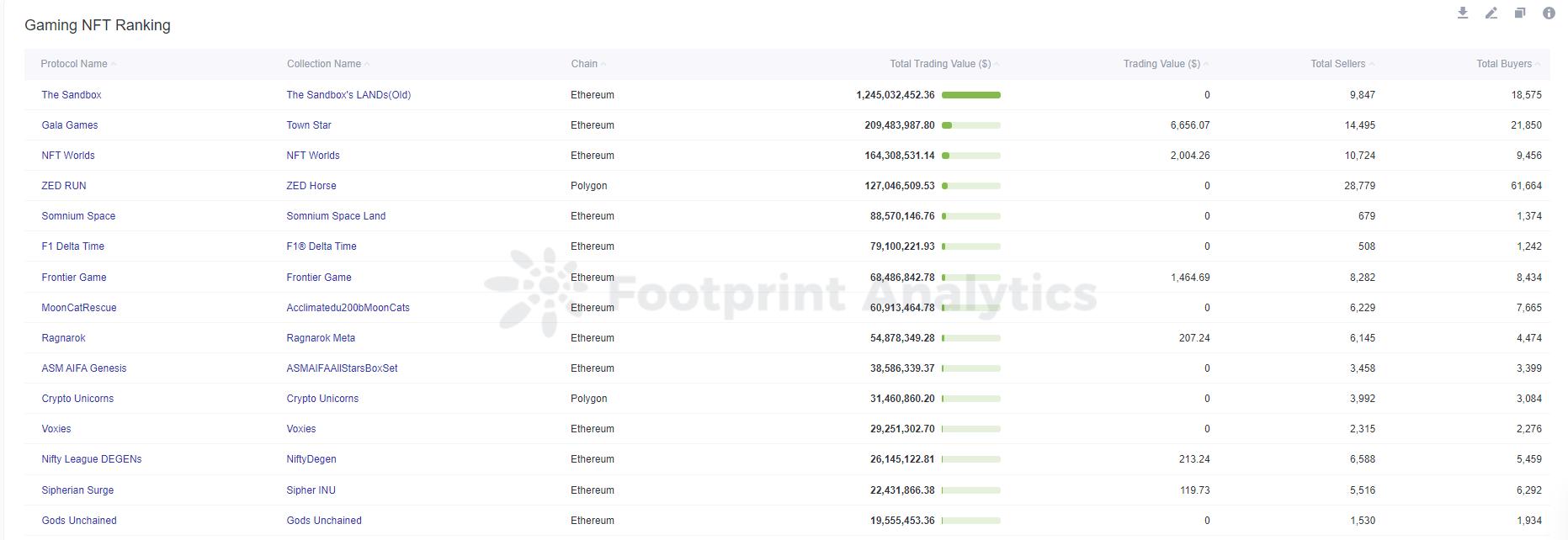 Gaming NFT Ranking (Data source: Footprint Analytics)