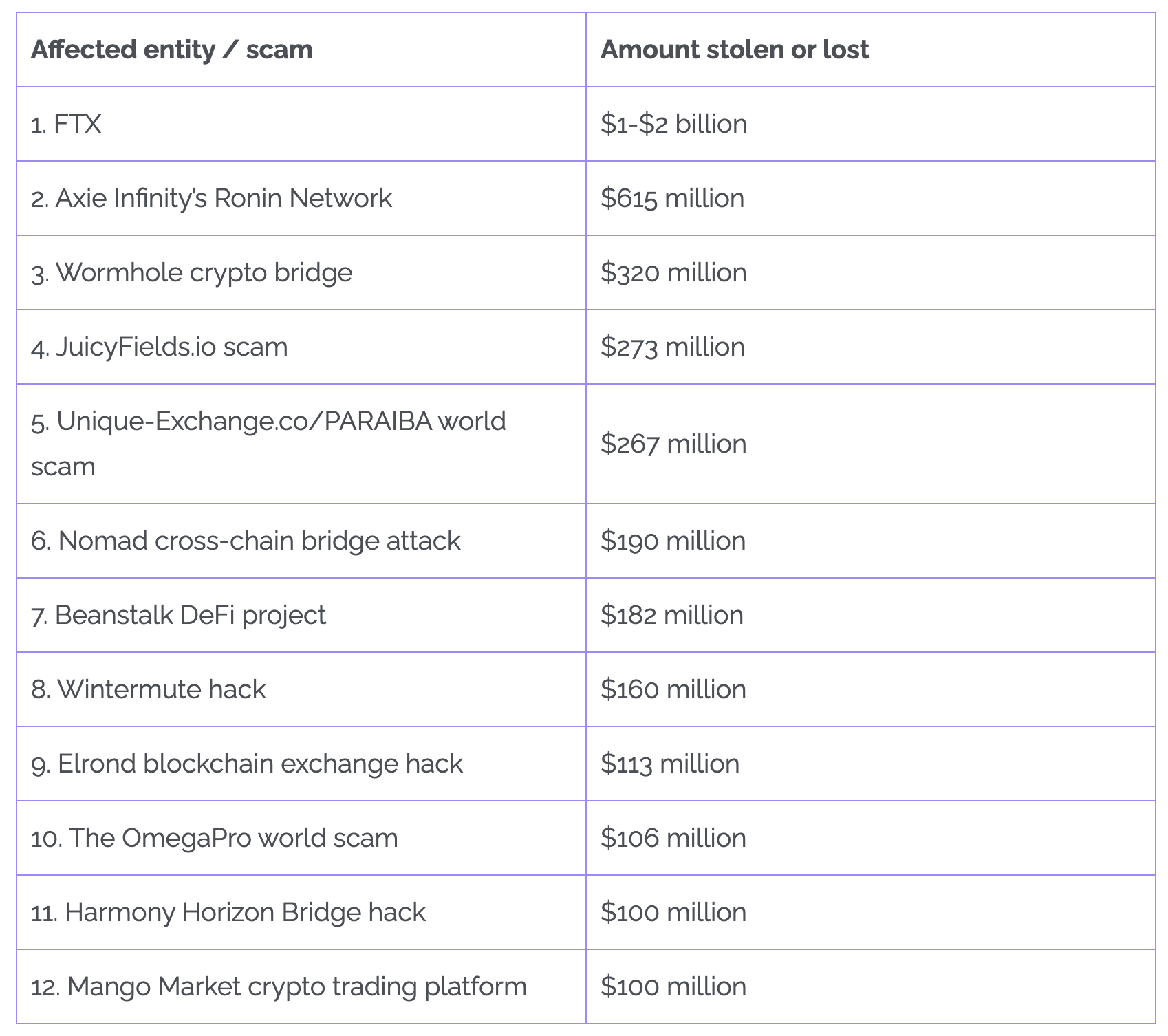 分析师估计,不良行为者每小时发起多达15次与加密货币相关的诈骗。迄今为止,最大的加密货币骗局可能是FTX的崩溃,据专家称,有1到20亿美元的客户资金继续下落不明。