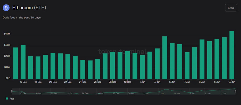 净收入:毛利润与营业费用之间的差额。这扣除了总网络费用收入减去费用的百分比和支付给服务提供商/验证者的区块补贴。当这个数字是正数时,它表示被销毁的 ETH(由于交易量)多于支付给验证者的网络安全费用。