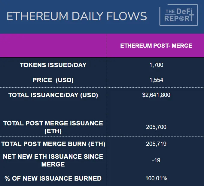 我们可以将盈利能力的转变归因于 9 月 16 日发生的合并。下面我们可以观察合并以来 ETH 的净新发行量。
