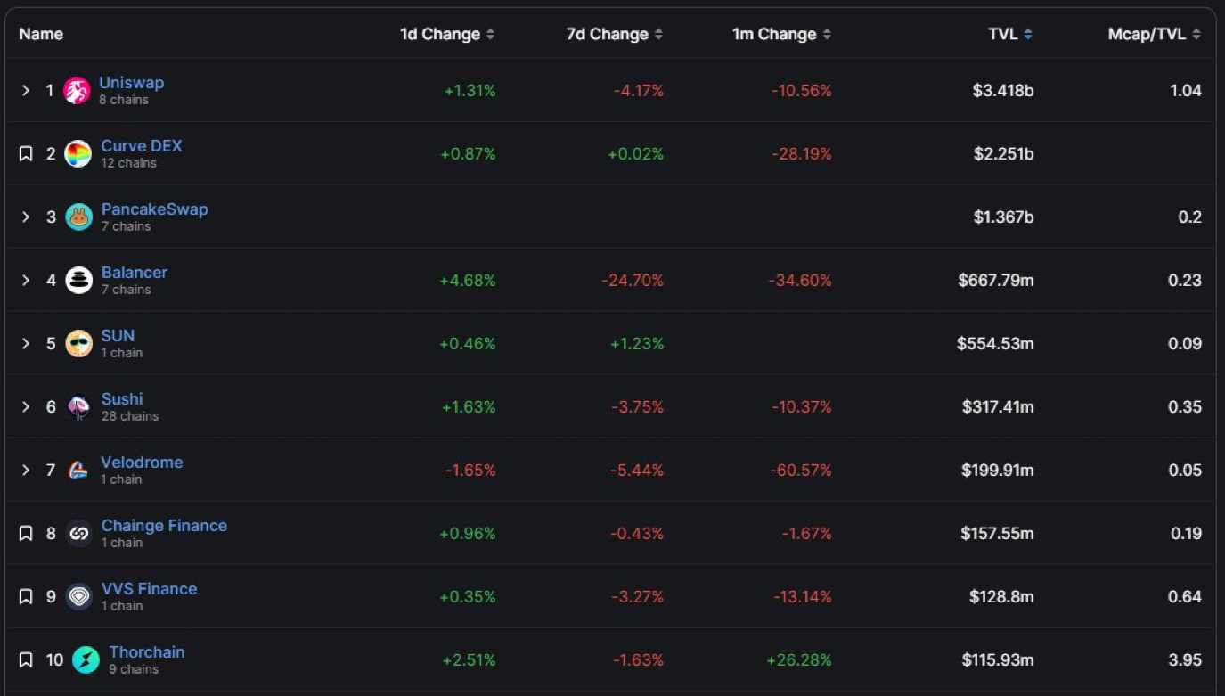Velodrome 也是整个 DeFi 生态中唯一一个 TVL 进入前 10 名的 Solidly Variants。