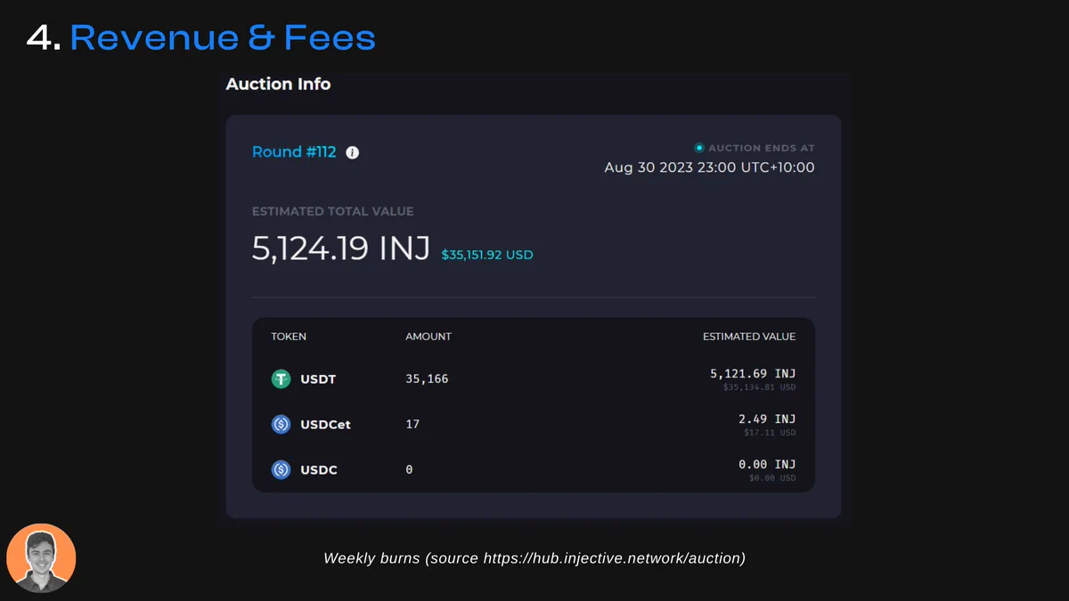 • INJ dApps 的 60%费用 → 每周通过回购和销毁机制拍卖。