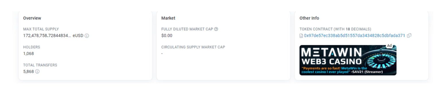 2、所有稳定币的永恒问题是应用场景,在当前阶段 eUSD 除 Curve 和 Uni 的两个交易对外并没有其他应用场景,对于稳定币来说长期发展严重受限。