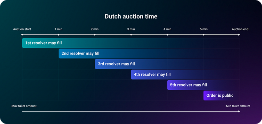 - 1inch fusion:随时间增加 resolver 的数量,同时价格衰减。