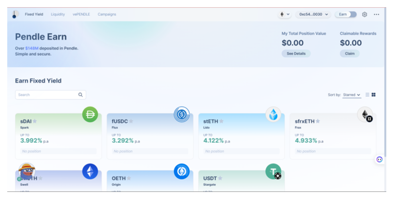 Earn 界面将适合不太了解衍生品但想要固定利率的用户。这是通过购买本金代币来实现的,其结构类似于零息债券。