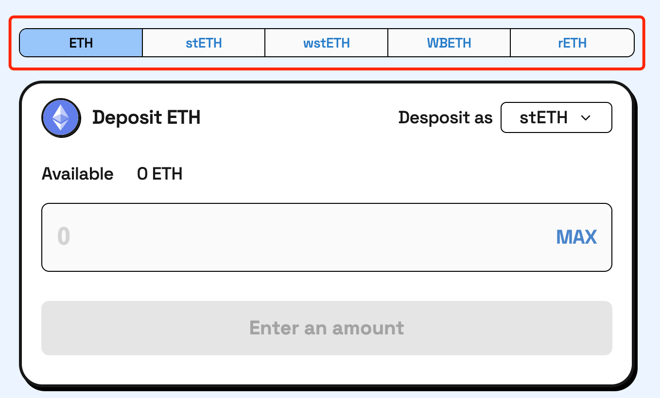 除了之前支持 $ETH 和 $stETH 存入外,目前v2支持 $wstETH $wbETH $rETH 存入,并铸造 $eUSD 。