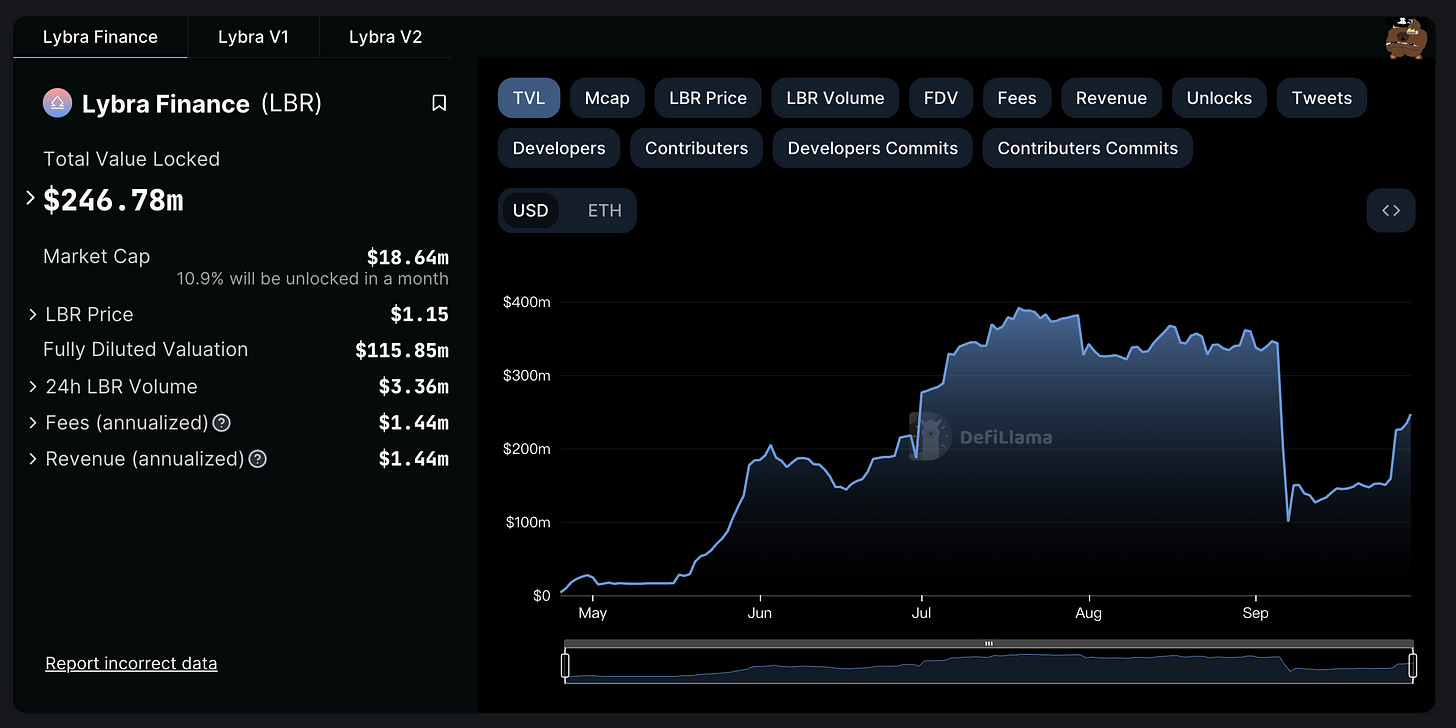 总的来说,Lybra这些操作都是为了解决之前Lybra所遇到的增长问题(peUSD、多类型LST、eUSD挂钩)和 $LBR 通胀和赋能(Burn、治理War、dLP)的问题,现在看来,虽然Lybra在v1—>v2中遇到了一些问题,但是最终的结果是好的,目前TVL也在回暖,假以时日应该可以回到巅峰水平。