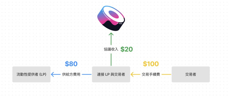 收入:交易手续费 ,每产生 $100 交易手续费,Sushiswap 净收入为 $20。