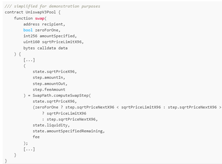 具体来说,由Uniswap V3Pool 3中的swap函数计算的步长为: