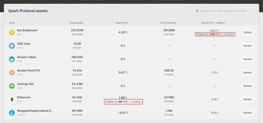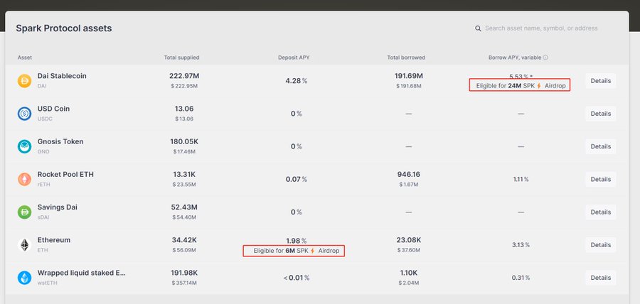 按照规划,盲挖最晚可能是24年5月才结束。 那么,大半年时间,大概1%。 这还不如老老实实存 $sDAI 。 https://forum.makerdao.com/t/proposed-spark-pre-farming-airdrop-formula/21786…