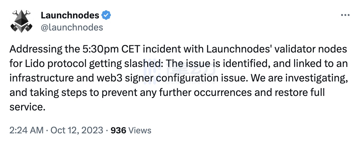 Launchnodes 随后回应道,此次罚没事件发生在世界标准时间 10 月 11 日下午 3:30 左右。