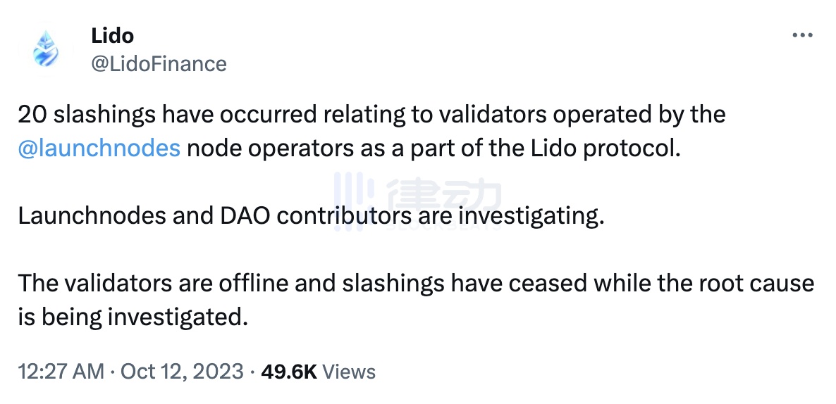 Lido验证器遭Slashing损失超20ETH,LSD「罚没问题」引关注