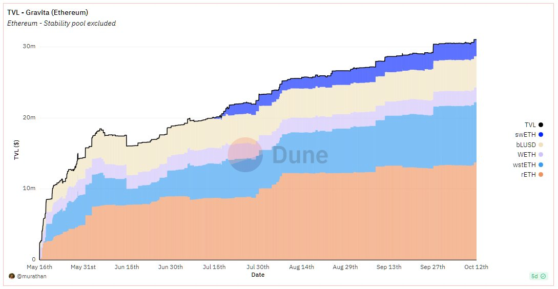 - 资料来源:https://dune.com/murathan/gravita; https://defillama.com/protocol/gravita-protocol;
