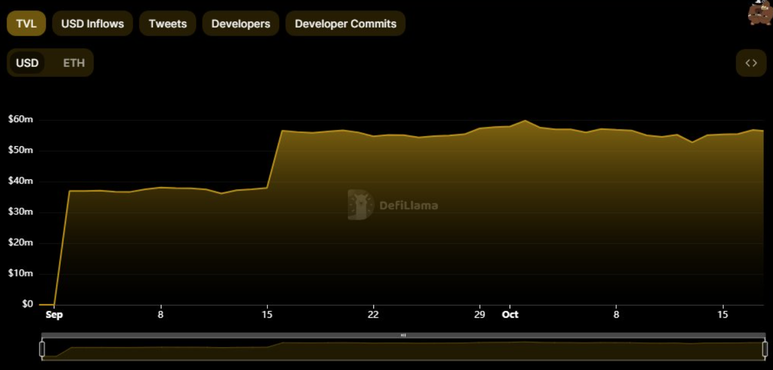 据 @DefiLlama 数据, TVL 最高为 5700 万美元。