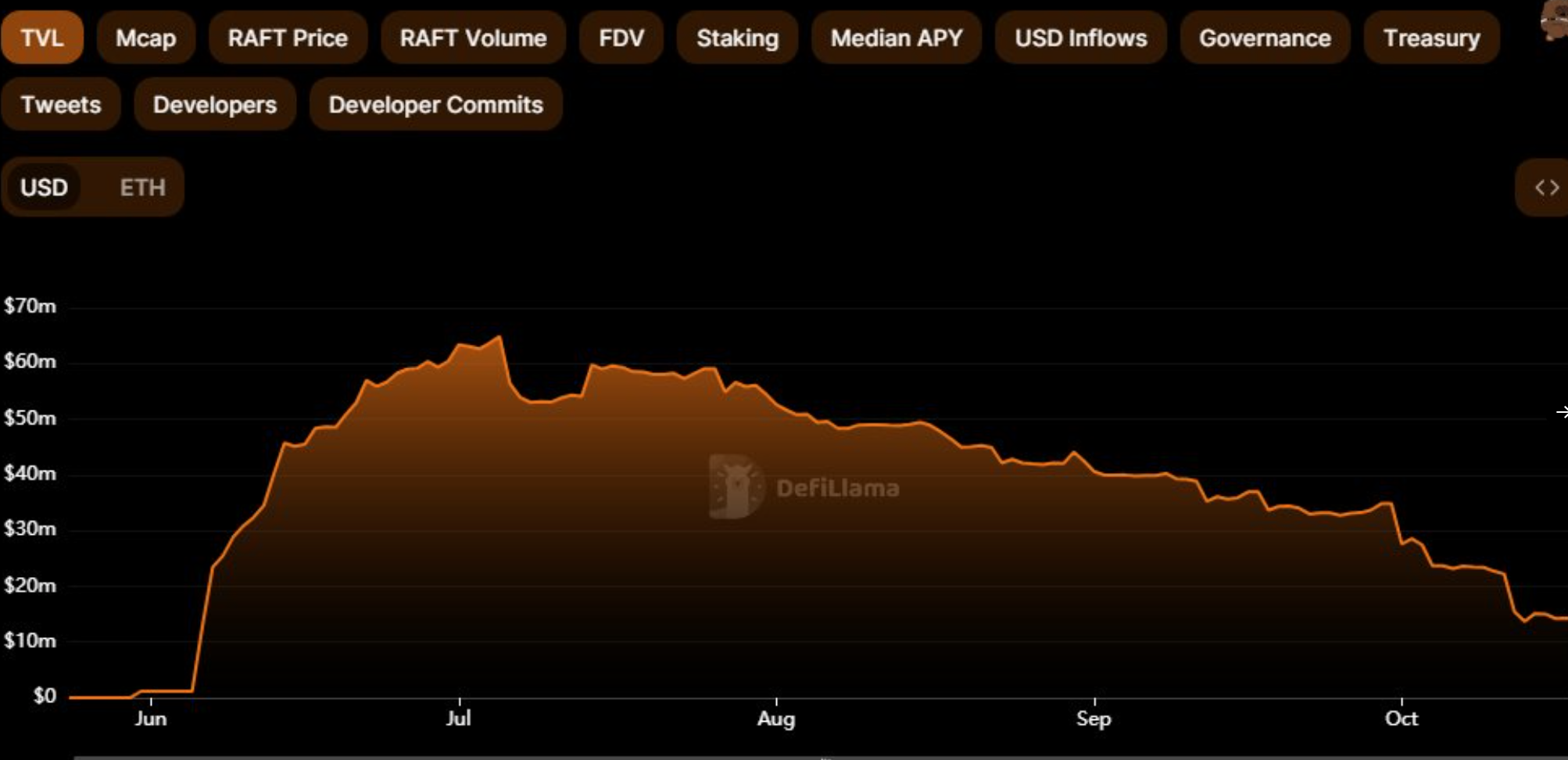 - 资料来源:https://defillama.com/protocol/raft; https://dune.com/the_datanerd/raft;