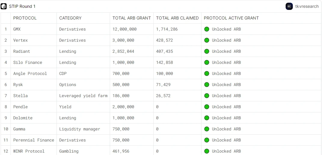 10 月 13 日, Arbitrum 启动的短期激励计划(STIP)首轮投票完成,参与投票的 95 个项目中有 29 个项目入选。