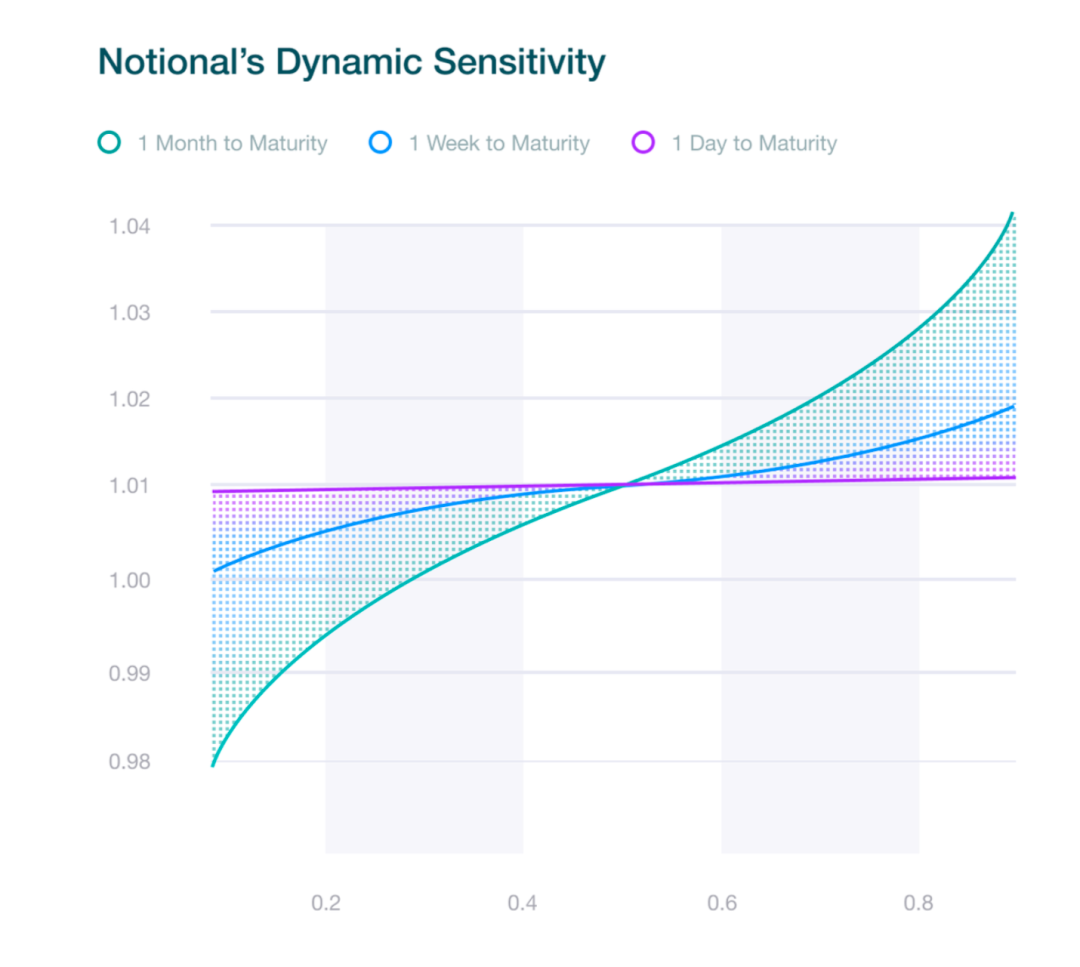 - Pendle v2 就借鉴了 Notion v2 的曲线,用于为 PT 与 SY 建立流动性池,同时满足了「PT maturity 后会价值与底层资产 1:1 」、「临近 maturity 波动会越来越小」与「利率总是在一定的区间内波动,AMM 需要集中流动性」的三个特点。在我们看来,这三个曲线中,Notional v2 确实是更佳的选择。