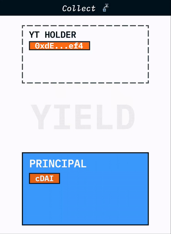 - Collect YT 会将生息资产的浮动收益,持续分发到 YT 持有人手上,直至 Maturity,在 Maturity 后,收益会停止分发,而持有 YT 也会变的毫无价值。