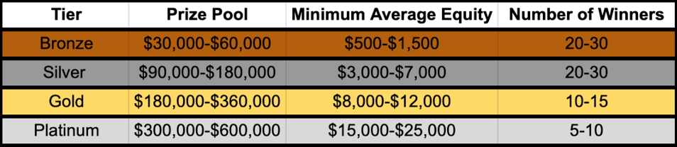 与基于活动的奖励相辅相成的是基于绩效的奖励(于激励计划的第二个交易季开始),占交易奖励分配总额的 15-30%。