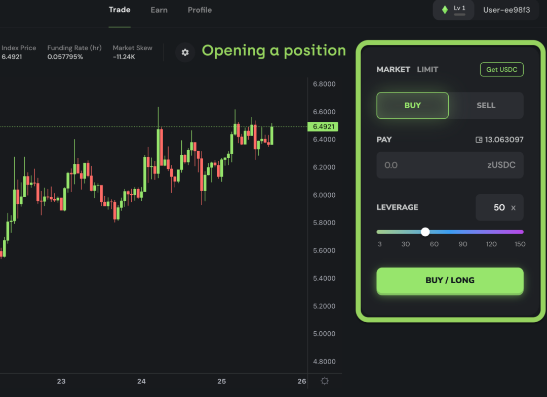 为了进行杠杆交易,交易者将抵押品存入协议中。交易者可以选择最高 50 倍的杠杆,杠杆越高,清算价格越高,随着借贷费用的增加,清算价格将逐渐增加。