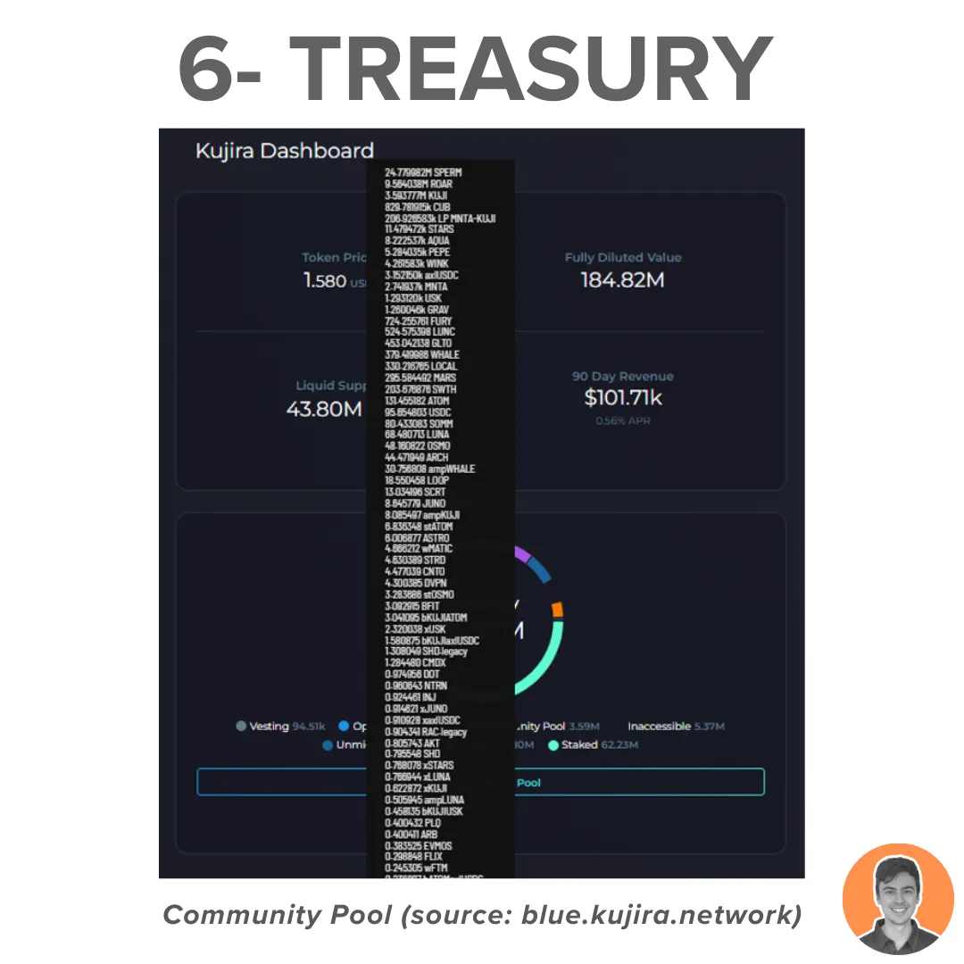 社区池是用于资助项目、合作伙伴关系和其他有利于社区的举措的代币集合。目前总持有量为 570 万美元(大部分为 KUJI),控股包括: