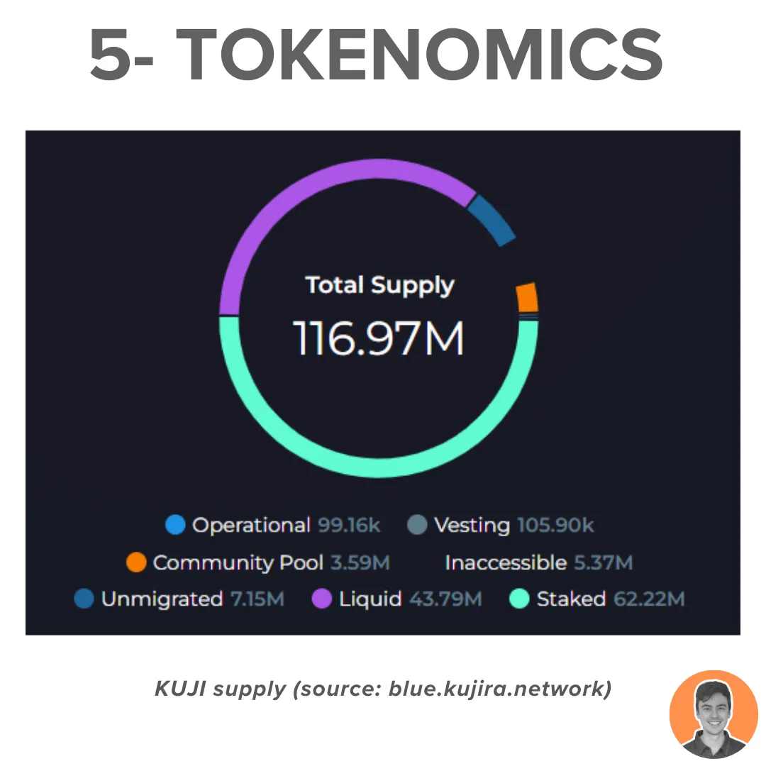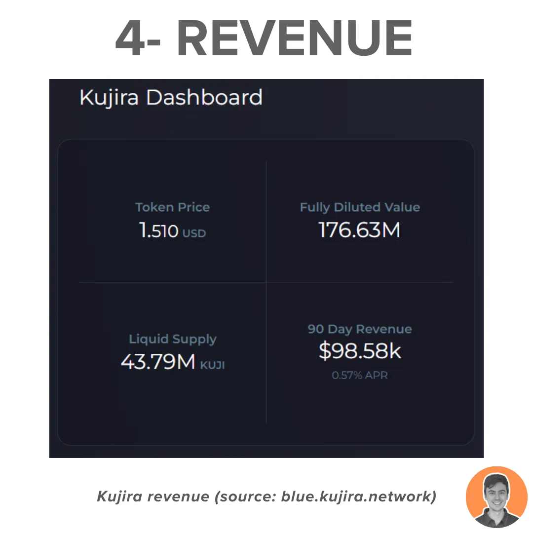 该协议的主要收入来源来自其 dApp。用户使用 KUJI 代币支付网络和 dApp 费用,所有费用和奖励随后都会分配给 KUJI 质押者。