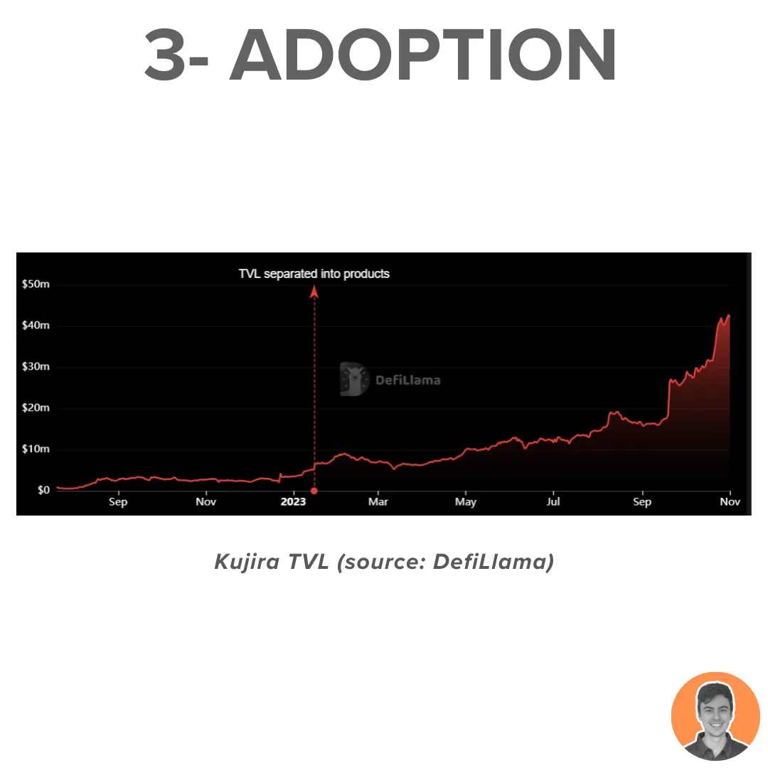 Kujira TVL 在 2023 年出现了强劲增长,目前略高于 4200 万美元。