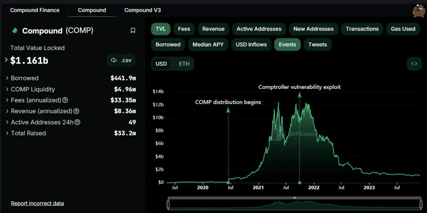 数据来源:https://defillama.com/protocol/compound