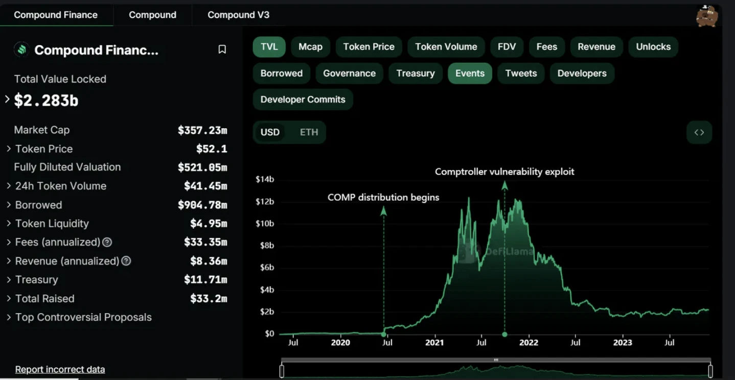 数据来源:https://defillama.com/protocol/compound-finance