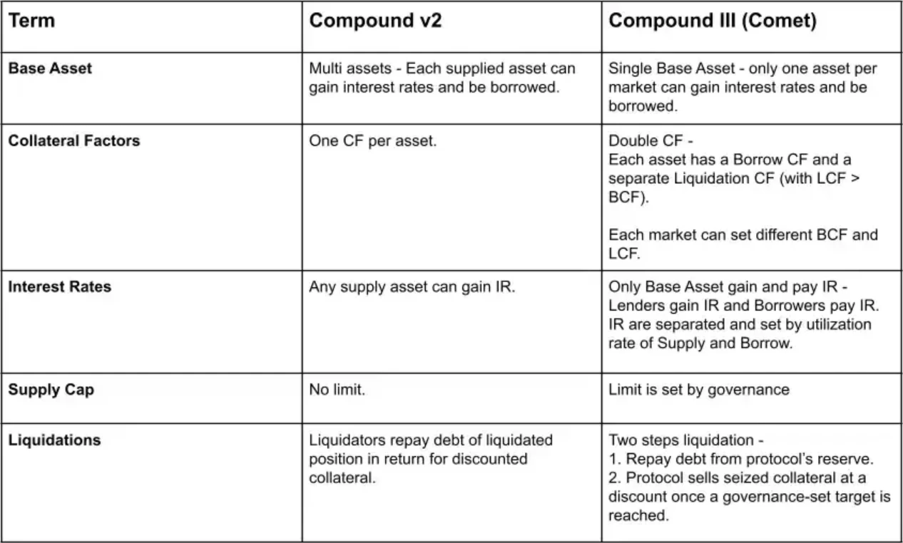 COMP V2将生息资产的流动性交还给用户,III 又收了回去,最开始的特点是开创了点对池追求资本效率,但 III 最终将资产隔离开来,选择安全性至上。想起默哥说的去中心化借贷其实订单簿或许依旧是潜在的最优解之一。