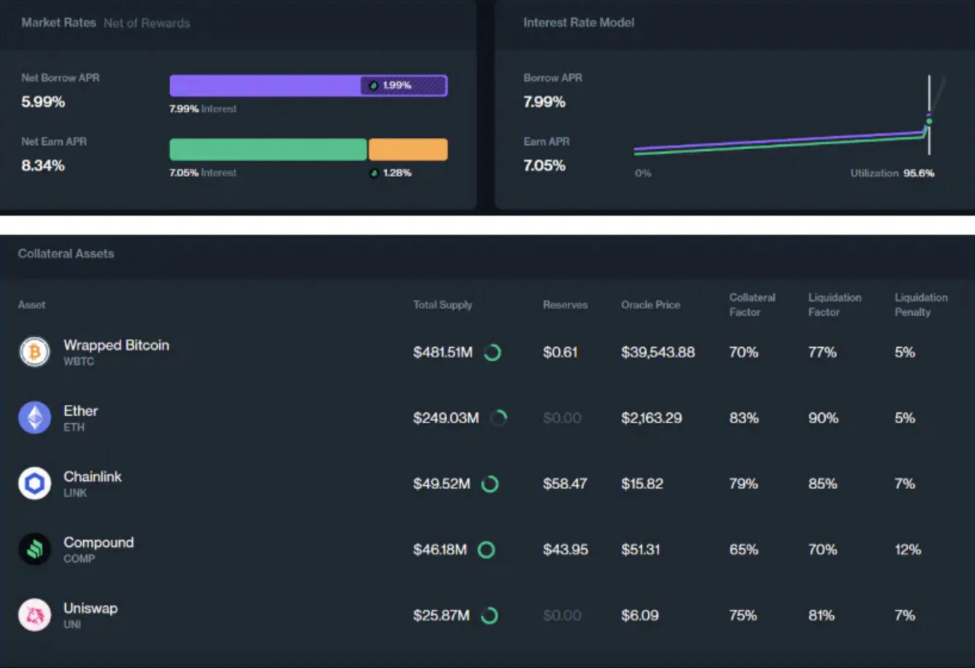 Compound V2 Market 那块儿误导性很强,让人感觉像是每一个资产是一个池子,我第一眼以为就是有很多人在协议里存了大量的 Eth,然而借的人很少。。。