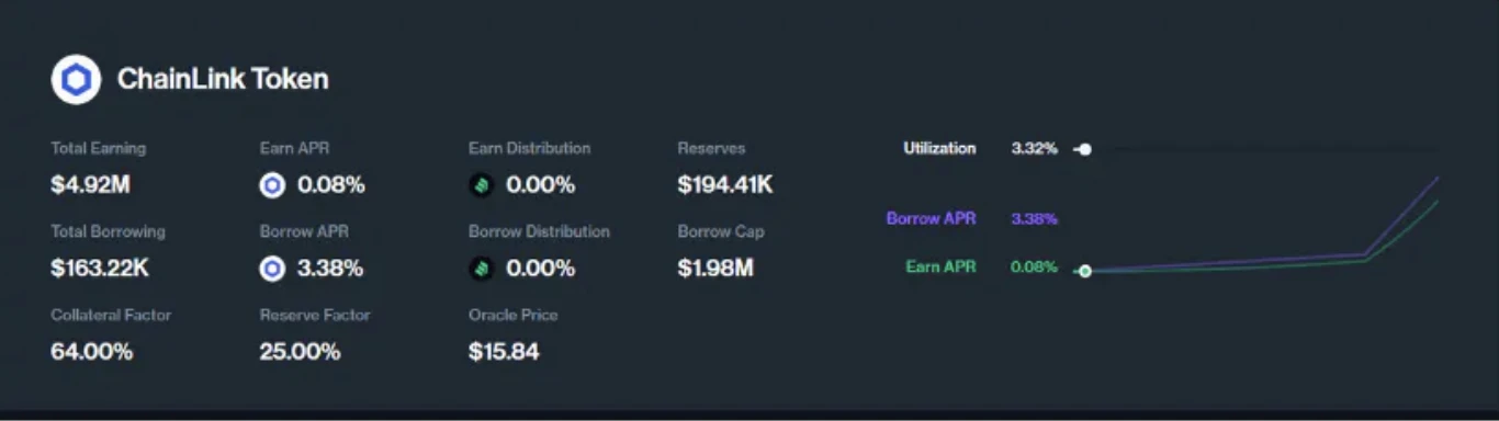 Eth、WBTC、 Chainlink 包括一些蓝筹 Defi 等,Total Earning 高,而 Total Borrowing 极低,Utilization 低的资产,一定程度意味着在 Compound 上做多 BTC、ETH 的用户居多。