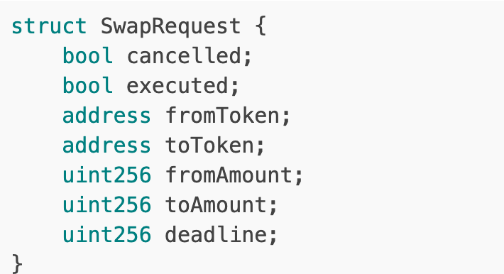 为了帮助向MEV搜索者传达这一意图,会发出事件,他们可以将其作为策略的一部分。他们还可以对SwapRequests数组进行迭代(确保适当过滤取消和执行的交换)。