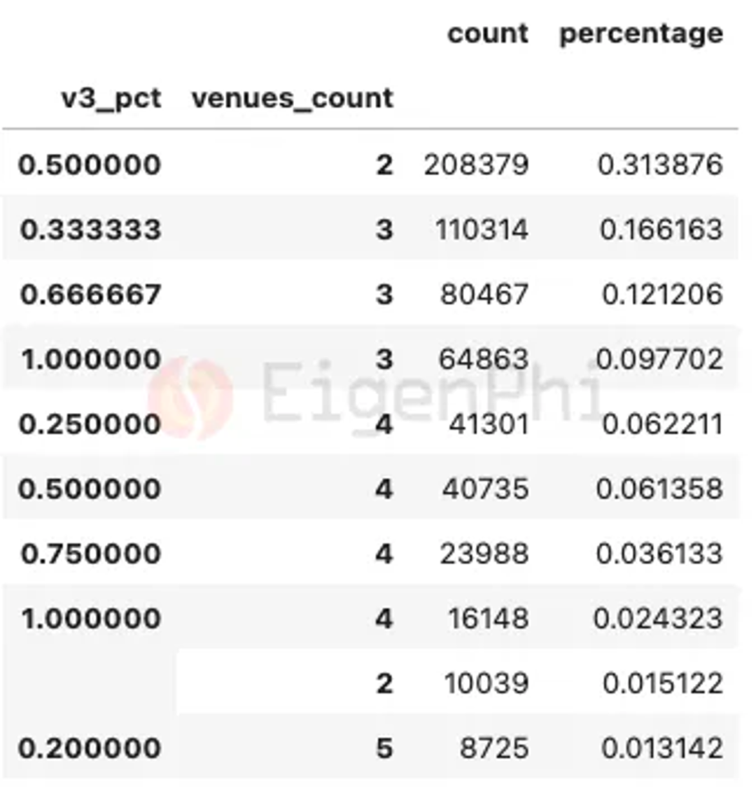 套利模式的不同场所数目的分布,来源:EigenPhi