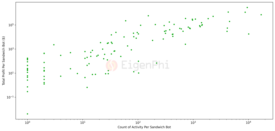三明治 Bot 攻击频率与利润的点图,来源:EigenPhi