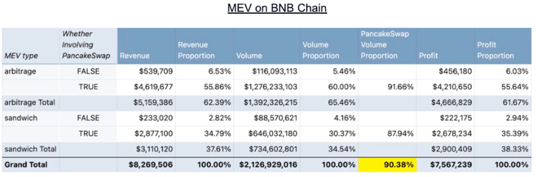 - Pancakeswap v3 在 BNB 链有着显著更少的 MEV 比例;