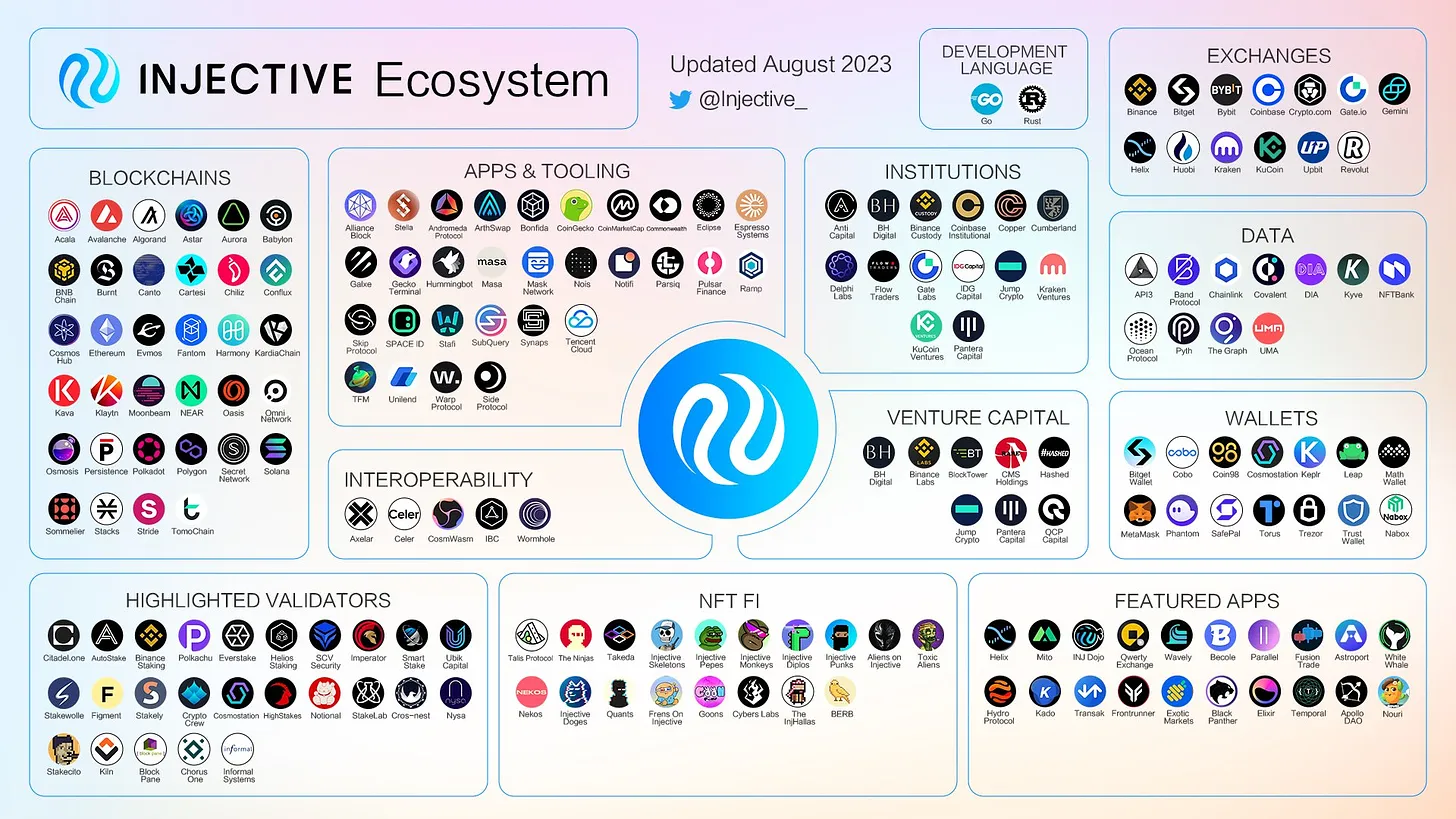 Injective Protocol 是一个针对 DeFi 应用优化的可互操作的 L1 区块链。它具有开箱即用的功能特征,如完全去中心化的订单簿,使得开发诸如交易所和预测市场等应用程序成为可能。Injective 使用 Cosmos SDK 构建,利用 Tendermint 共识实现即时交易最终确定,并促进与以太坊和支持 IBC 的链等主要网络的快速跨链交易